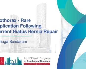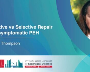 Listen to Dr. Sheraz Markar present during the Giant Hiatus Hernia Session, held during the 2025 ISDE World Congress in Brisbane, Australia, from September 18-20, 2025. Watch all presentations in this session, including: Fundoplication after Giant PEH Repair – Complete, Partial, or None! – Siva Raja Elective vs Selective Repair in Asymptomatic PEH – Sarah Thompson Recurrence after Giant Paraesophageal…